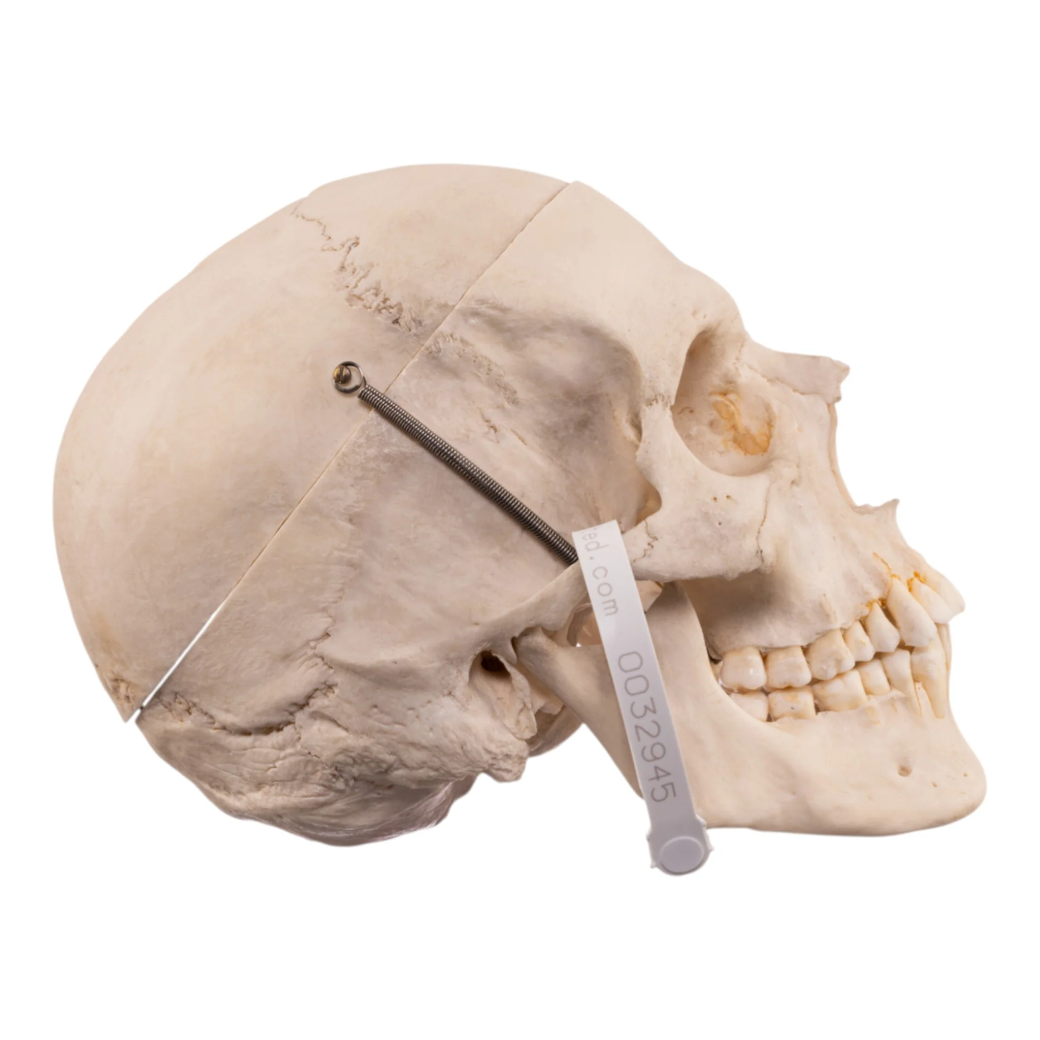 - Presents with calvarium cut and spring held jaw